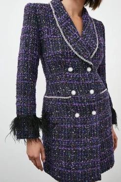 Wholesale ✔️ Karen Millen Boucle Sparkle Diamante And Feather Tux Mini 👗 Dress ⭐