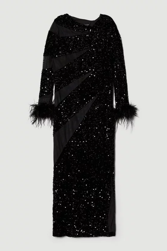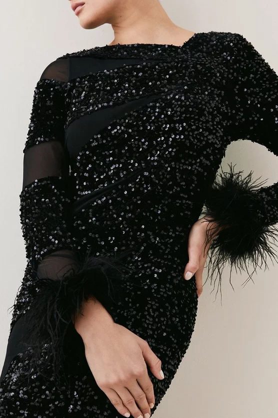 Imbued with after-dark aplomb, this scintillating piece boats a tactile arrangement of embellished detailing. From the feather cuffs to the all-over sequins, this mesh-panelled piece harnesses the essence of the midnight hour.