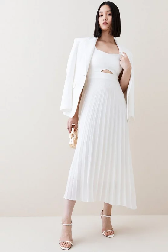 Main: 63% Polyester, 31% Viscose, 6% Elastane. Lining: 100% Polyester. Dry clean only. Model wears UK 8/US 4. Model height: 5β9. Length measurement: 115cm.