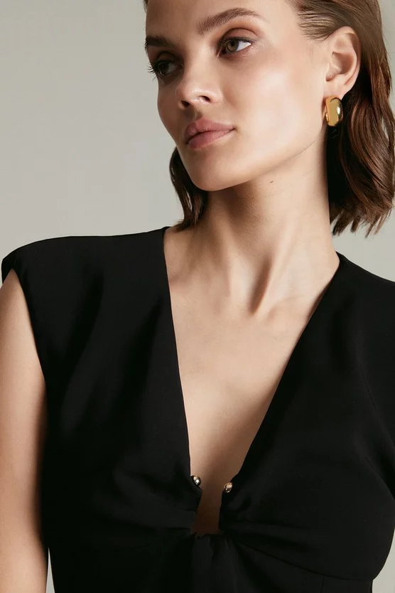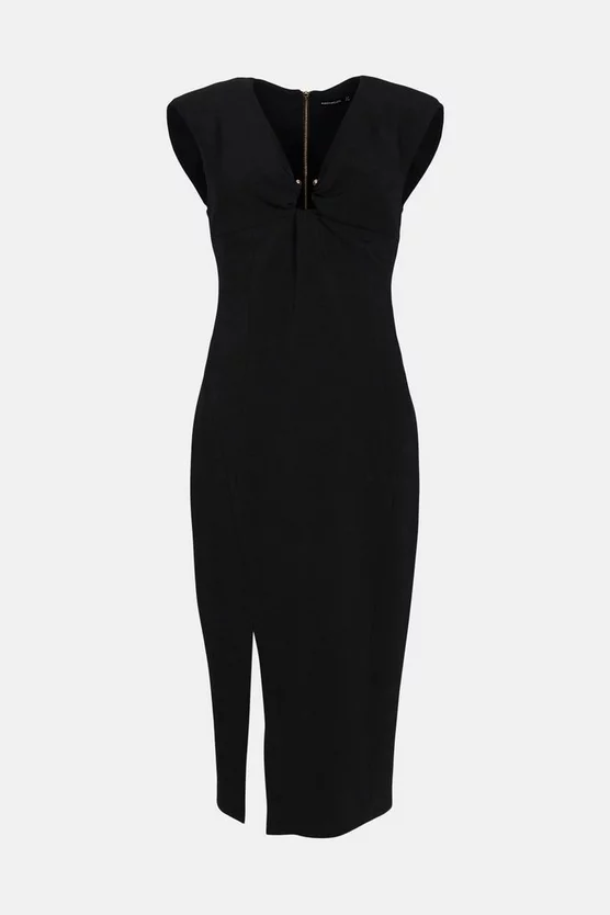 Made from our iconic compact stretch fabric, this feminine midi dress hugs the figure in all the right places and guarantees day-long comfort. With its contemporary ring-detail bust and sultry hem split, it strikes a fine balance between ladylike and luxe.