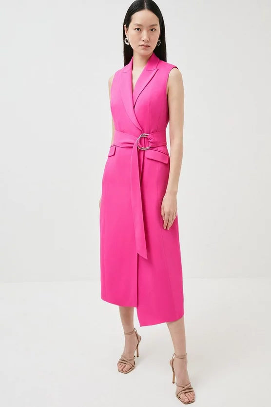 Tailored with refined reverence, this midi dress nods to timeless tailoring with a tuxedo-influenced silhouette. Composed from Compact Stretch for a sculptural effect, this piece has a belted waist for an ultimately feminine finish.