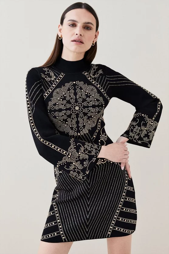 Best Sale π Karen Millen Embellished Geo Jacquard Knit Pencil Midaxi π Dress β