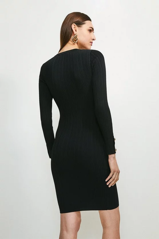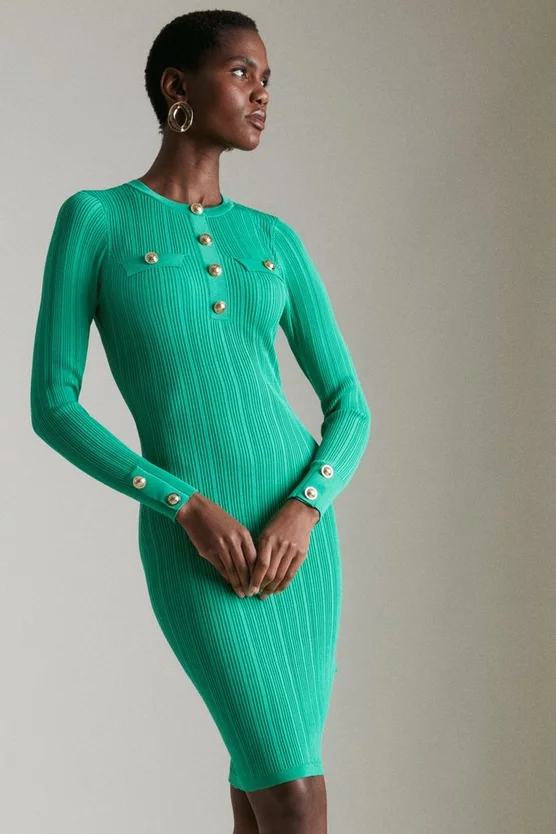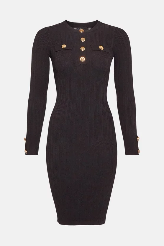 Offer a dose of luxe to your knitwear collection with this dress. Accented by glossy military-inspired buttons, the piece comes in a special ribbed knit thatβll hug all the right places.