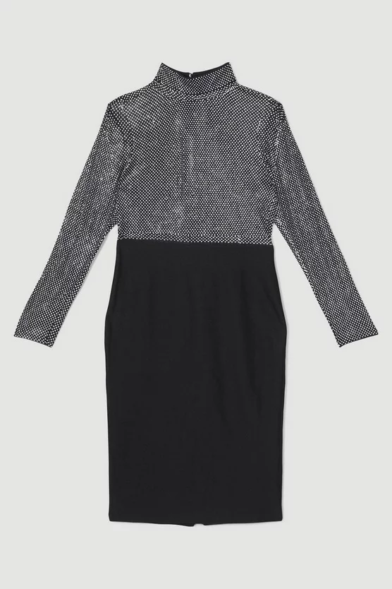 MainοΌ68% VISCOSE 28% POLYAMIDE 4% ELASTANE, ContrastοΌ92% POLYESTER 8% ELASTANE. Cool hand wash only. Model wears UK Plus Size 18 US 14. Petite size 10 centre back length approx 120cm