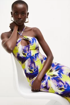 Best Pirce π Karen Millen Italian Signature Stretch Optical Floral Mini π Dress π