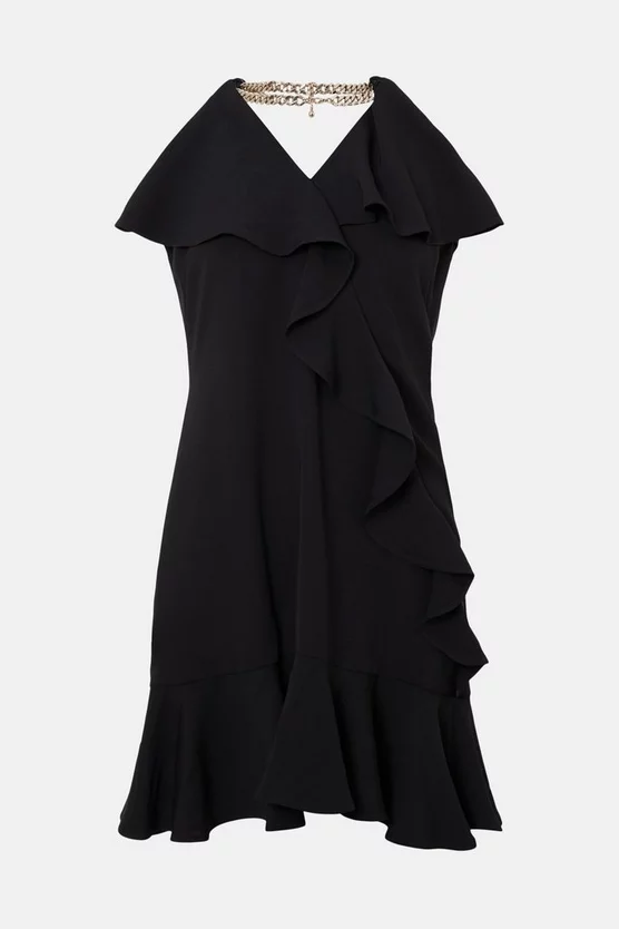 Set your sights on this dramatic ruffled dress for spring/summer. Draped with waterfall frills, it moves beautifully across any dance floor and features a chunky chain-link strap meaning you can forgo your favourite necklace for the night. With an open back and flirty, ruffled hem, it feels just right for balmy summer evenings.