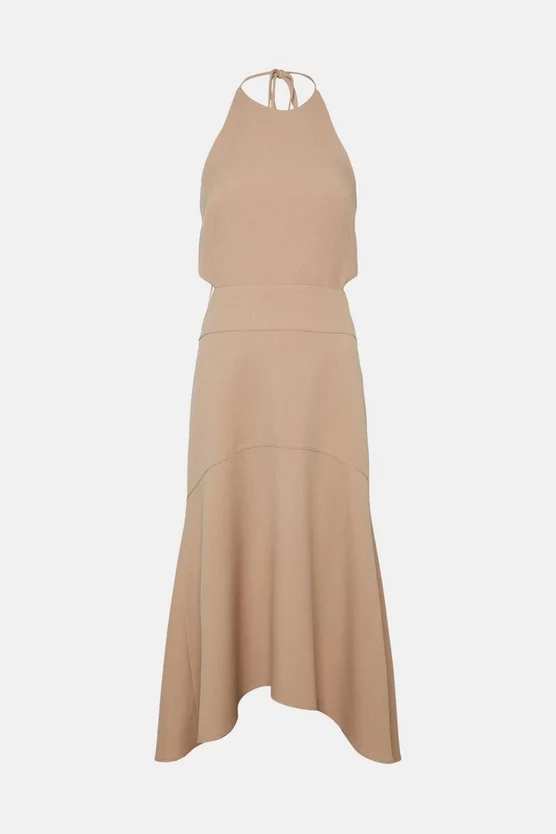 Made for the sun-drenched days of summer, this beautifully cut nude dress blends modern cut-outs and slender tie straps that trail alluringly behind you. Light and breezy, the softly tailored silhouette, back bow trim and alluring high-low hem guarantee a polished β but suitably laid-back β finish that feels just right for sun-baked sojourns.