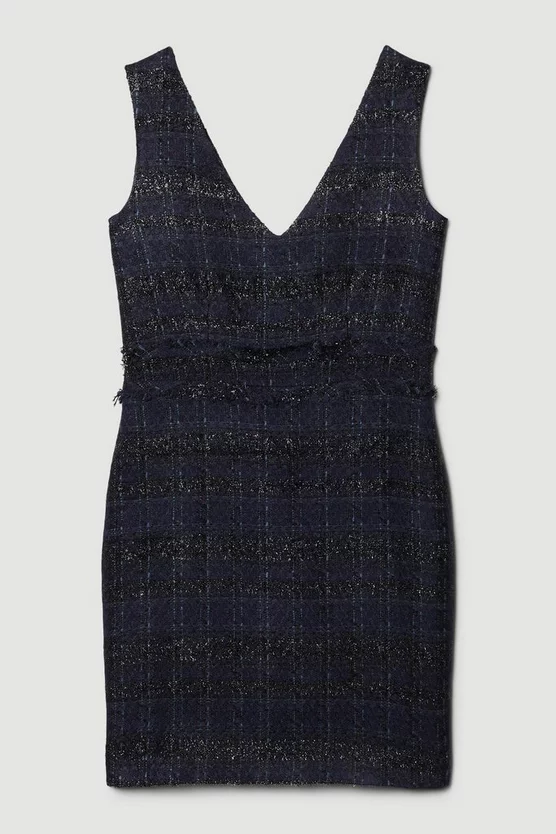 Main: 76% Acrylic, 11% Cotton, 10% Polyester. 3% Metallised fibres. Lining: 100% Polyester. Dry clean only. Model wears UK 8/ US 4. Model height: 5″9. Length measurement: 90cm.