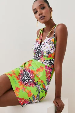 Best Pirce π Karen Millen Italian Signature Stretch Optical Floral Mini π Dress π
