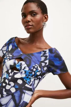Deals β¨ Karen Millen Italian Signature Stretch Butterfly Print Midi π Dress β€οΈ
